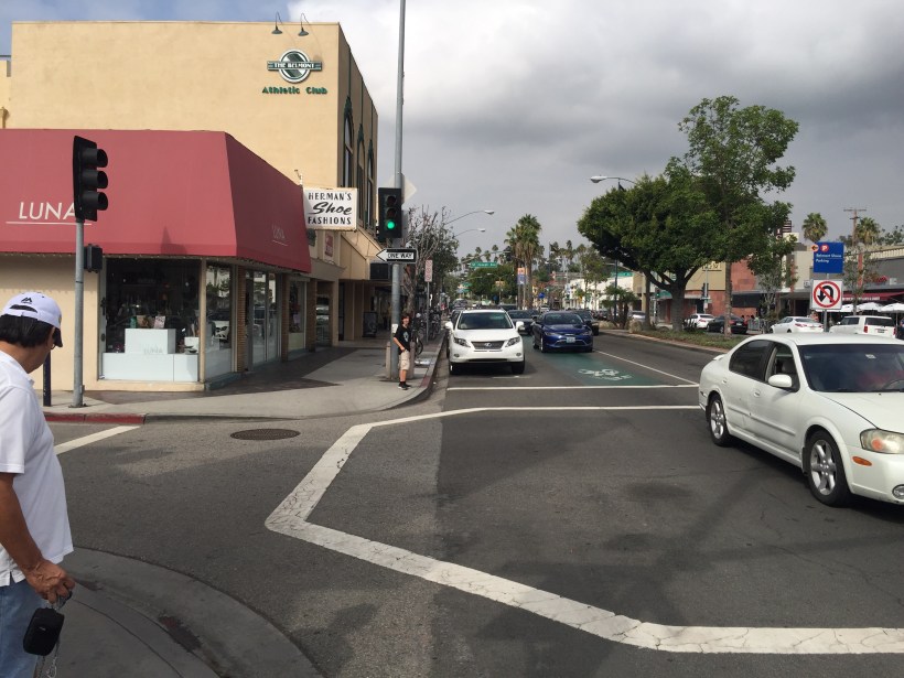 Heading south from Long Beach took me along that city’s lively 2nd Street district with its innovative “green carpet” shared lanes that give motorists a clear signal to expect cyclists.  Vibrant local commercial districts with Complete Streets are surely part of the solution, offering locals easy access to a rich variety of  shopping, entertainment, etc. to meet their daily needs with little or no driving.