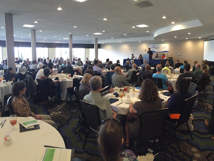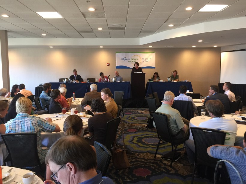(Sorry, this post is rather text-heavy, owing to the limited visuals afforded by hotel conference rooms)Two hundred+ bike advocates and bike planning professionals from all over CA assembled at the Wyndham Bayside Hotel in San Diego last Sunday for the group’s bi-annual gathering. The theme this year was Equity In Motion, addressing the persistent disparity in transportation-related resources and barriers to progress experienced by disadvantaged communities. Several breakout sessions and plenaries illuminated the challenges and opportunities surrounding this crucial and often misunderstood topic as well as sessions dealing with bike infrastructure, cycling education, promotion, funding, legislation and more.