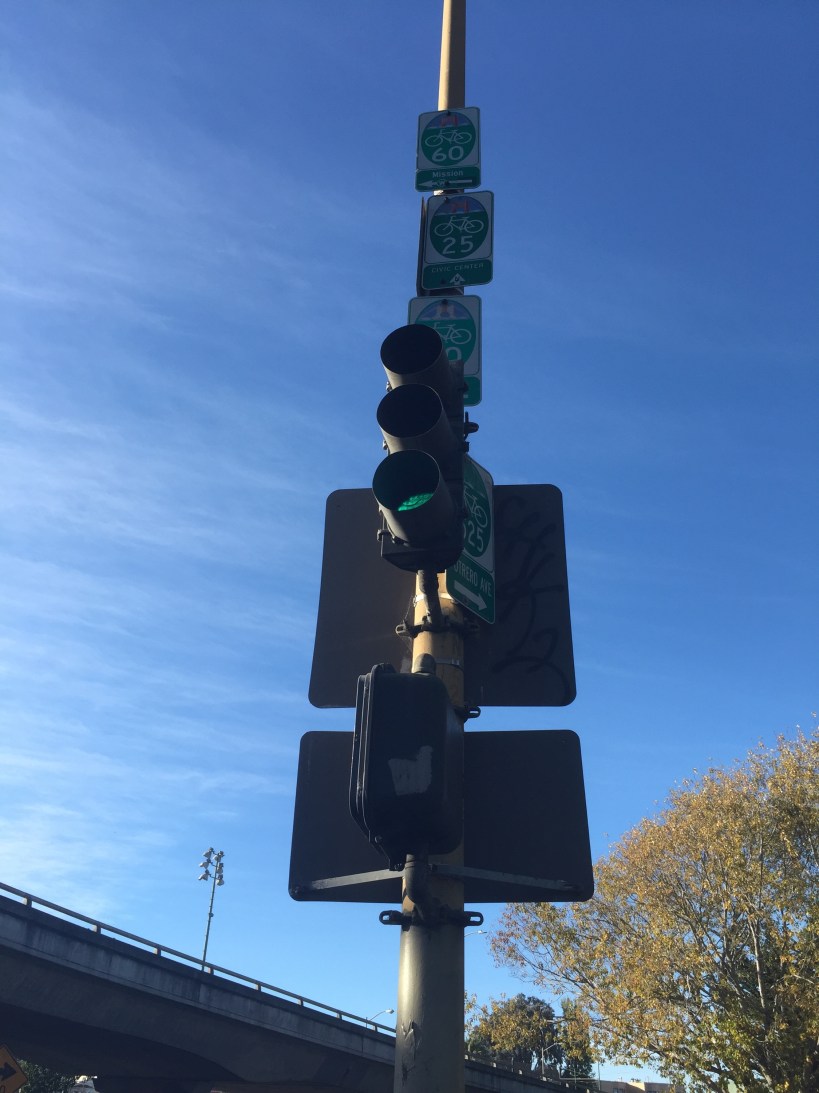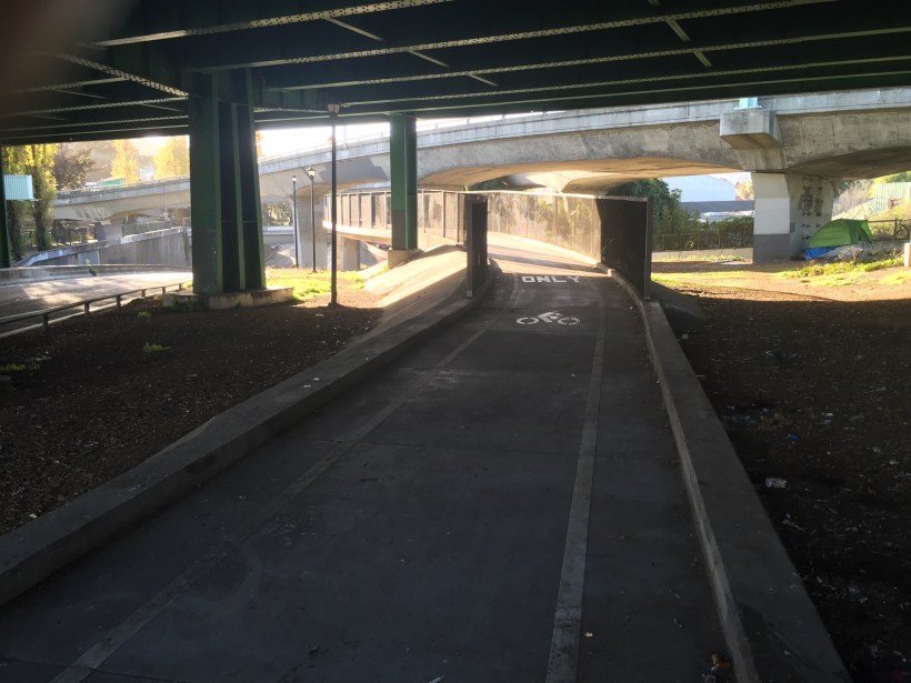 Below, a separated bike path and bridge provided a safe undercrossing of the 101 freeway, a welcome facility for what is often a treacherous place for cyclists to navigate.